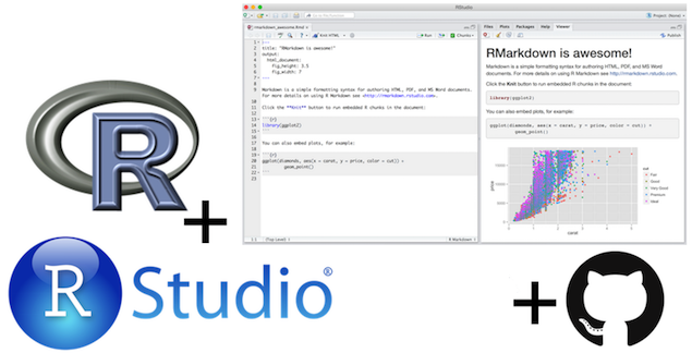 class: center, middle, inverse, title-slide .title[ # RMarkdown und R Basics ] --- class: inverse, center, middle # Reproduzierbare Datenanalyse --- ## Reproduzierbare Datenanalyse .alert[Was bedeutet Reproduzierbarkeit?] Kurzfristig: - Können die Tabelle und Schaubilder aus dem zur Verfügung stehenden Code und den Daten erstellt werden? - Wird klar beschrieben was und **warum** etwas gemacht wurde? - Sind alle Schritte der Analyse nachvollziehbar dokumentiert? Langfristig: - Können Elemente des Codes für andere Projekte wiederverwendet werden? --- ## Programme in diesem Kurs  .small[Quelle: [datasciencebox.org](https://datasciencebox.org//slides/u1_d01-meet-the-toolkit/u1_d01-meet-the-toolkit.html#1).] - Programmiersprache -> R und RStudio - "Literate Programmierung" (alles in einem Ort, d.h. Code, Text und Output) -> RMarkdown - Versionierung -> Git/Github --- class: inverse, center, middle # R und RStudio --- ## Was ist R und RStudio? - R ist eine Programmiersprache - RStudio ist ein Interface für R **Wie können Sie sich das vorstellen?** <img src="figs/engine-dashboard.png" width="90%" style="display: block; margin: auto;" /> .small[Quelle: [ModernDive](https://moderndive.com/1-getting-started.html)] --- ## Lernen Sie R und RStudio kennen Erstes Problem Set: - R als Taschenrechner - Kleine Grafiken erzeugen - Datensätze in R einlesen --- ## tidyverse .pull-left[ <img src="figs/tidyverse.png" width="70%" style="display: block; margin: auto;" /> ] .pull-right[ .center[[tidyverse](https://www.tidyverse.org/)] - Zusammenstellung verschiedener Pakete zur Datenanalyse - Alle Pakete verbindet eine gemeinsame Philosophie und Struktur - Hauptautor: Hadley Wickham ] --- class: inverse, center, middle # Markdown --- ## Einführung - Sehr einfache Syntax ohne komplexe Formatierung - Sie können sich voll auf das Schreiben konzentrieren - Plattformunabhängig (Kann zwischen verschiedenen Geräten geteilt werden) - Besonders gut für Readmes, Tutorials, Reports, deskriptive Analysen, Blogs, Journal Artikels ... - Einfache Möglichkeit PDFs, Word-Dateien oder HTMLs zu erstellen - PDFs können Sie mit dem Paket `pandoc` erzeugen, vorausgesetzt sie haben Latex installiert --- ## Überschriften Es sind bis zu sechs Glierdungsebenen in RMarkdown möglich: - Überschrift 1 wird so erreicht: `# Überschrift 1` - Überschrift 4 wird so erreicht: `### Überschrift 4` Durch das voranstellen eines weiteren Hashtags (`#`) gelangen Sie jeweils eine Gliederungsebene tiefer --- ## Links In Markdown können Sie auch Links zu externen Dokumenten setzen: - Möglichkeit 1: Lokale Links - Zu Verlinkender Text in eckige Klammern gesetzt (`[ ]`) und der Link danach in runde Klammern (`( )`) - [Beispiel](https://www.markdowntutorial.com/) (`[Beispiel](https://www.markdowntutorial.com/)`). - Möglichkeit 2: Globale Links - Es gibt auch die Möglichkeit Links global zu setzen - [Markdown Tutorial][Tutorial] (`[Markdown Tutorial][Tutorial]`). - Später im Text, oder am Ende: `[Tutorial]: https://www.markdowntutorial.com/` - Vorteilhaft bei mehrmaligem Verwenden des Links [Tutorial]: https://www.markdowntutorial.com/ --- ## Bilder - Funktioniert ähnlich wie Links - Bildunterschrift in eckigen Klammern, Link in runden Klammern - Beispiel: `` --- ## Bilder - Ausgeführt sieht dies dann folgendermaßen aus:  --- ## Formeln - Möglichkeit Formeln in Latex zu setzen - Inline Formel möglich: `\(R = \alpha + \beta * \pi^{2} + \epsilon\)` (`$R = \alpha + \beta * \pi^{2} + \epsilon$`) - Oder in einer Formelumgebung: ``` \begin{equation} \mathbb{E}[Y] = \beta_0 + \beta_1x \end{equation} ``` `\begin{equation} \mathbb{E}[Y] = \beta_0 + \beta_1x \end{equation}` --- class: inverse, center, middle # R Markdown --- ## Einführung - R Markdown ist eine Erweiterung von Markdown mit sogenannten `Chunks` - R Code kann direkt in R Markdown ausgeführt werden - Resultate aus R werden direkt in das Markdown-Dokument eingefügt - Einfaches Erstellen von HTML-Seiten mit integrierten Tabellen, Grafiken, Code - Mit `knitr` können R Markdown Dateien kompiliert und in _normale_ Markdown Dateien umgewandelt werden - Hilfe zu R Markdown gibt es unter `?rmarkdown` - Das R Markdown [Cheatsheet](https://raw.githubusercontent.com/rstudio/cheatsheets/main/rmarkdown-2.0.pdf) kann oft sehr hilfreich sein --- ## knitr Um `knitr` zu verwenden klicken Sie den folgenden Button in RStudio:  --- ## Einbetten von Code Es gibt drei Arten, wie Sie ihren Code in R Markdown Dokumenten so verpacken, dass er beim "knitten" auch verarbeitet wird. - Fassen Sie den Code in Blöcke: Geben Sie `` ```{r} `` beim Start des Blocks und wenn der Block zu Ende ist ` ``` ` ein - Benutzen Sie die Tastaturkombination **Strg + Alt + I** (OS X: **Cmd + Option + I**) - Gehen Sie auf "Code" -> "Insert Chunk" in der Funktionsleiste --- ## Einbetten von Code - Chunks sind eingebettete Code-Blöcke in R Markdown - Auf der folgenden Folie wird die Funktionsweise von Chunks am Beispieldatensatz `economics` aus dem `tidyverse` Paket demonstriert - Der Datensatz `economics` beinhaltet Daten zur Arbeitslosigkeit in den USA seit 1967 - Im folgenden Beispiel wollen wir zuerst das Paket `tidyverse` laden und anschließend deskriptive Analyse mit zwei verschiedenen Befehlen durchführen - Durch das `knitten` in HTML wird sowohl der Code, als auch dessen Output angezeigt --- ## Einbetten von Code .small[ ``` r library(tidyverse) summary(economics) ``` ``` date pce pop psavert Min. :1967-07-01 Min. : 506.7 Min. :198712 Min. : 2.200 1st Qu.:1979-06-08 1st Qu.: 1578.3 1st Qu.:224896 1st Qu.: 6.400 Median :1991-05-16 Median : 3936.8 Median :253060 Median : 8.400 Mean :1991-05-17 Mean : 4820.1 Mean :257160 Mean : 8.567 3rd Qu.:2003-04-23 3rd Qu.: 7626.3 3rd Qu.:290291 3rd Qu.:11.100 Max. :2015-04-01 Max. :12193.8 Max. :320402 Max. :17.300 uempmed unemploy Min. : 4.000 Min. : 2685 1st Qu.: 6.000 1st Qu.: 6284 Median : 7.500 Median : 7494 Mean : 8.609 Mean : 7771 3rd Qu.: 9.100 3rd Qu.: 8686 Max. :25.